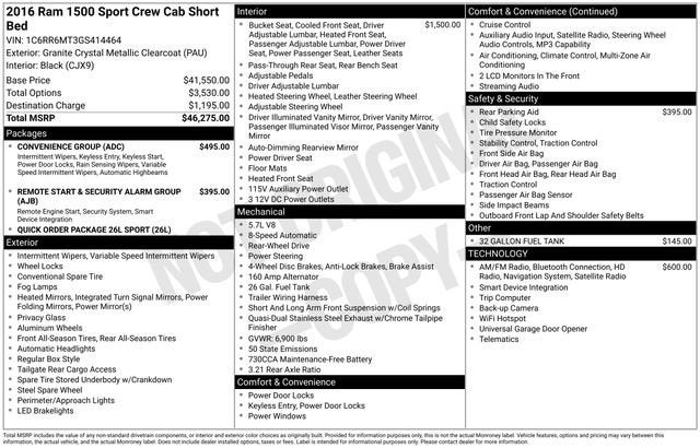 Experience the ultimate in style and capability with the 2016 Ram 1500 Sport. With its bold, distinctive appearance and impressive performance, this truck is sure to turn heads wherever you go. Schedule a test drive today and discover the difference for yourself.