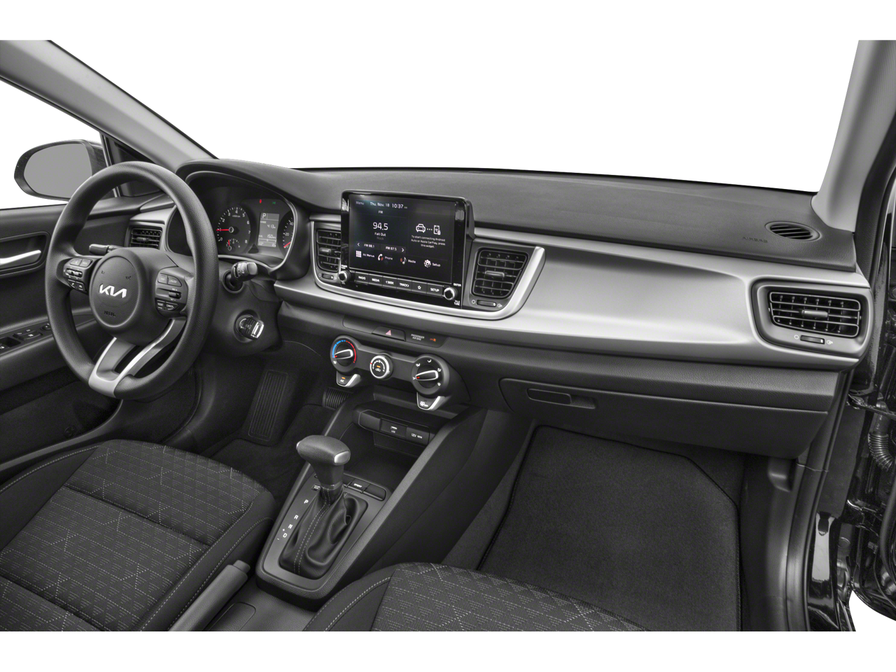 CARFAX One-Owner. Clear White 2022 Kia Rio S FWD CVT 1.6L 4-Cylinder 6 Speakers, ABS brakes, Air Conditioning, AM/FM radio, Brake assist, Bumpers: body-color, Cargo Net, Carpet Floor Mat, Driver door bin, Driver vanity mirror, Dual front impact airbags, Dual front side impact airbags, EC Mirror w/HomeLink, Electronic Stability Control, Front anti-roll bar, Front Bucket Seats, Front Center Armrest, Front reading lights, Front wheel independent suspension, Fully automatic headlights, Heated door mirrors, Illuminated entry, Low tire pressure warning, Occupant sensing airbag, Outside temperature display, Overhead airbag, Overhead console, Panic alarm, Passenger door bin, Passenger vanity mirror, Power door mirrors, Power steering, Power windows, Radio: AM/FM/MP3 Audio System, Rear Bumper Applique, Rear window defroster, Remote keyless entry, Speed control, Speed-sensing steering, Split folding rear seat, Steering wheel mounted audio controls, Tachometer, Tilt steering wheel, Traction control, Trip computer, Variably intermittent wipers, Wheels: 15 x 5.5J Steel w/Full Covers, Woven Cloth Seat Trim.