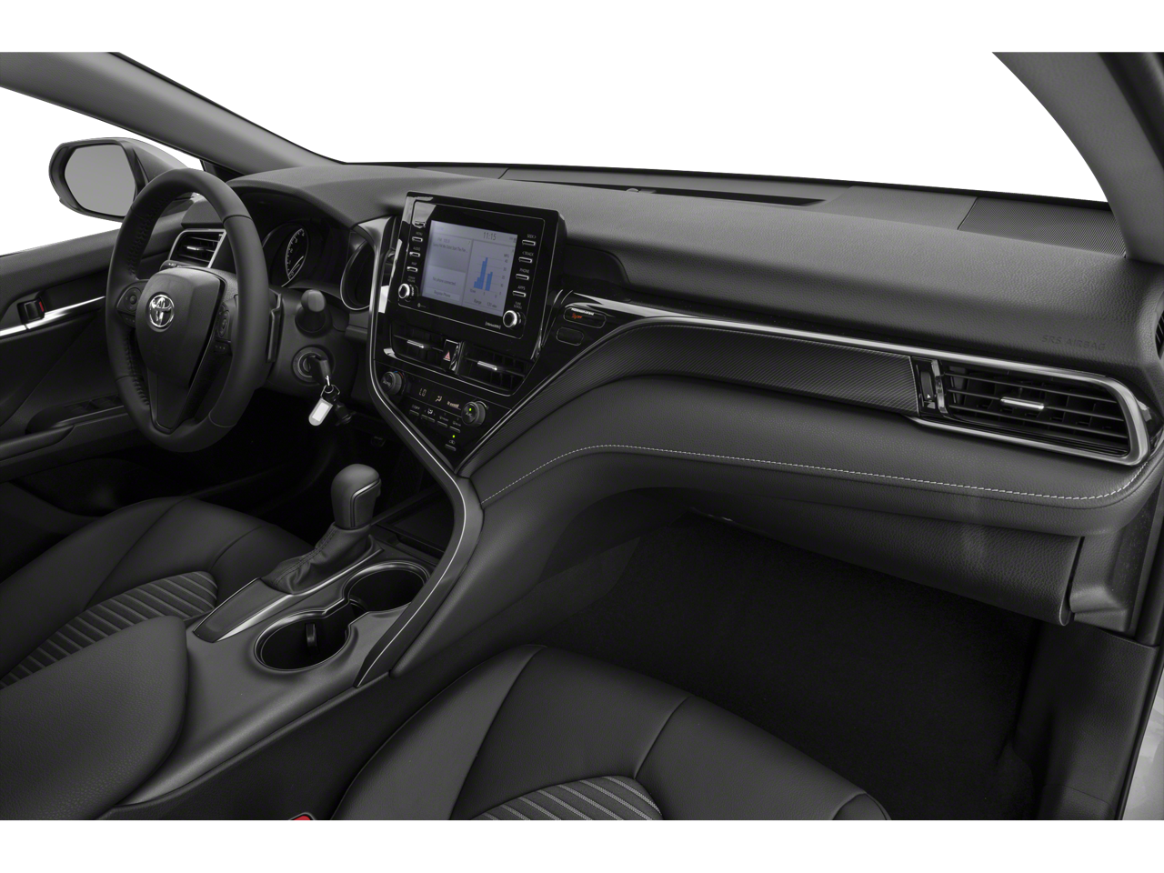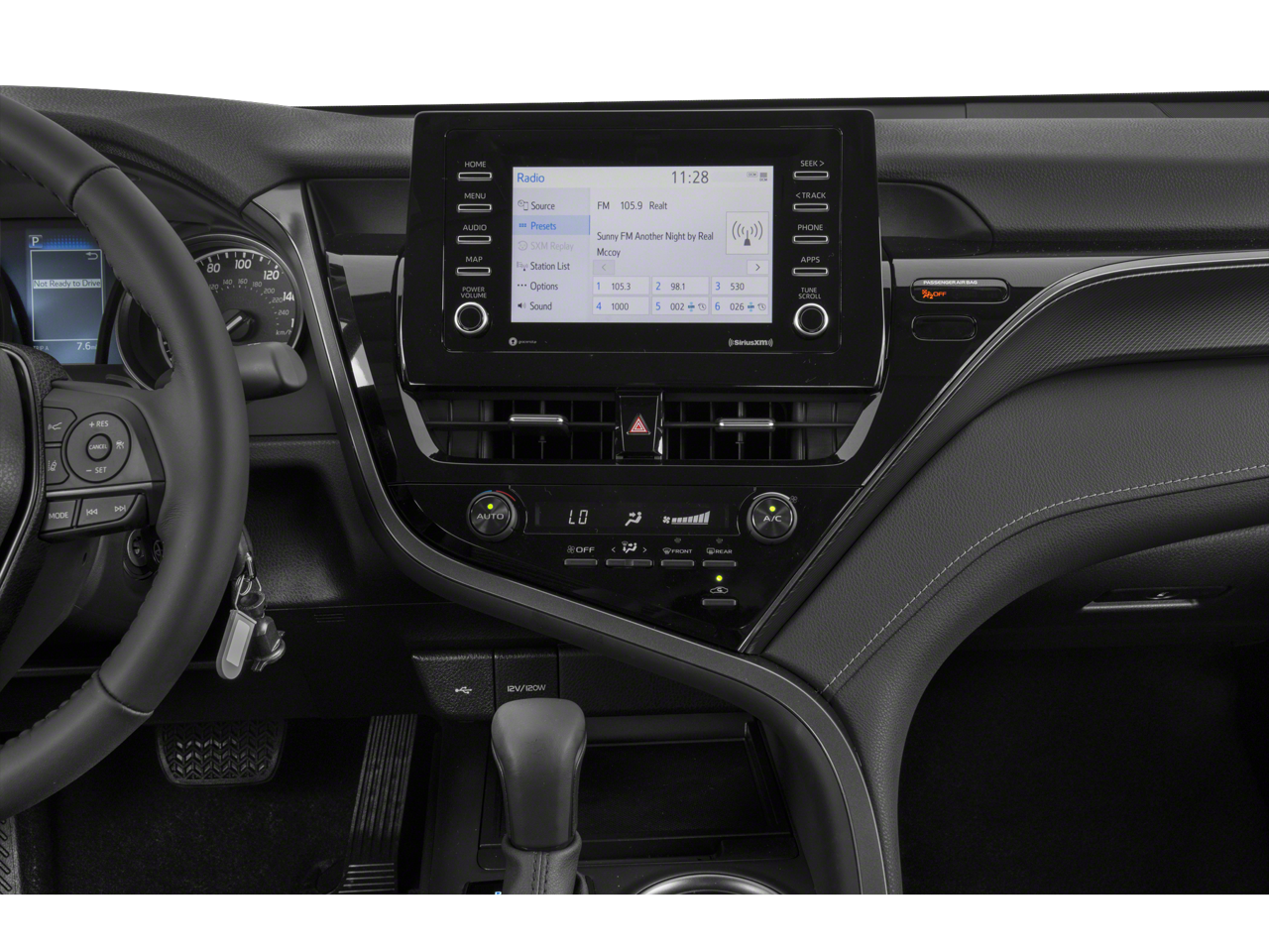 2022 Toyota Camry FWD 8-Speed Automatic 2.5L I4 DOHC 16V 4-Wheel Disc Brakes, 6 Speakers, ABS brakes, Air Conditioning, Alloy wheels, AM/FM radio: SiriusXM, Apple CarPlay/Android Auto, Auto High-beam Headlights, Automatic temperature control, Brake assist, Bumpers: body-color, Delay-off headlights, Driver door bin, Driver vanity mirror, Dual front impact airbags, Dual front side impact airbags, Electronic Stability Control, Emergency communication system: Safety Connect with 1-year trial, Exterior Parking Camera Rear, Fabric Seat Trim w/Sport SofTex, Four wheel independent suspension, Front anti-roll bar, Front Bucket Seats, Front Center Armrest, Front dual zone A/C, Front reading lights, Fully automatic headlights, Heated door mirrors, Illuminated entry, Knee airbag, Low tire pressure warning, Occupant sensing airbag, Outside temperature display, Overhead airbag, Overhead console, Panic alarm, Passenger door bin, Passenger vanity mirror, Power door mirrors, Power driver seat, Power steering, Power windows, Radio data system, Radio: AM/FM Audio System, Rear anti-roll bar, Rear seat center armrest, Rear side impact airbag, Rear window defroster, Remote keyless entry, Security system, Speed control, Speed-sensing steering, Split folding rear seat, Spoiler, Steering wheel mounted audio controls, Tachometer, Telescoping steering wheel, Tilt steering wheel, Traction control, Trip computer, Turn signal indicator mirrors, Variably intermittent wipers.