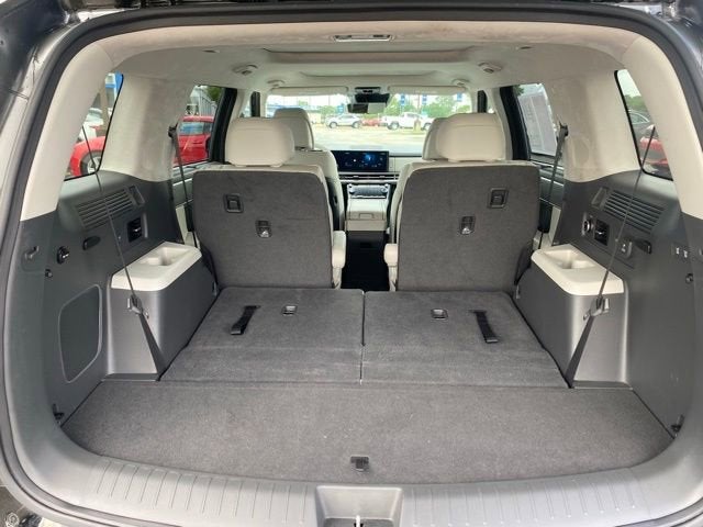 12 Speakers, 3rd row seats: bench, 4-Wheel Disc Brakes, ABS brakes, Air Conditioning, Alloy wheels, AM/FM radio: SiriusXM, Apple CarPlay & Android Auto, Auto High-beam Headlights, Auto-dimming Rear-View mirror, Automatic temperature control, Axle Ratio: 3.316, Brake assist, Bumpers: body-color, Cargo Cover/Screen, Carpeted Floor Mats, Delay-off headlights, Driver door bin, Driver vanity mirror, Dual front impact airbags, Dual front side impact airbags, Electronic Stability Control, Emergency communication system, Exterior Parking Camera Rear, Four wheel independent suspension, Front anti-roll bar, Front Bucket Seats, Front Center Armrest, Front dual zone A/C, Front reading lights, Fully automatic headlights, Garage door transmitter: HomeLink, Heads-Up Display, Heated & Ventilated Front Bucket Seats, Heated door mirrors, Heated front seats, Heated rear seats, Heated steering wheel, Illuminated entry, Knee airbag, Leather steering wheel, Low tire pressure warning, Memory seat, Navigation System, Occupant sensing airbag, Option Group 01, Outside temperature display, Overhead airbag, Overhead console, Panic alarm, Passenger door bin, Passenger vanity mirror, Power door mirrors, Power driver seat, Power Liftgate, Power moonroof, Power passenger seat, Power steering, Power windows, Quilted Premium Nappa Leather Seat Trim, Radio: AM/FM/HD Bose Premium Audio System, Rain sensing wipers, Rear anti-roll bar, Rear side impact airbag, Rear window defroster, Rear window wiper, Remote keyless entry, Security system, Speed control, Speed-sensing steering, Split folding rear seat, Spoiler, Steering wheel mounted audio controls, Tachometer, Telescoping steering wheel, Tilt steering wheel, Traction control, Trip computer, Turn signal indicator mirrors, Variably intermittent wipers, Ventilated front seats, Wheels: 21 x 8.5J Unique Dark Finish Alloy.
