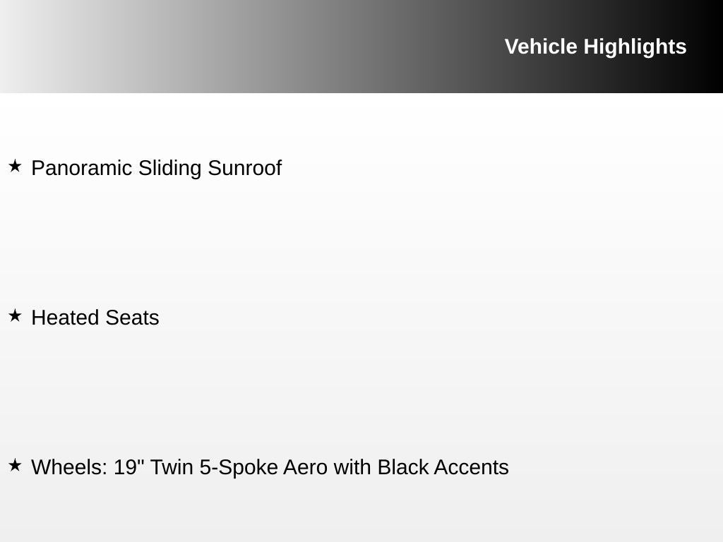 Heated Seats, Panoramic Sliding Sunroof, Wheels: 19 Twin 5-Spoke Aero with Black Accents.