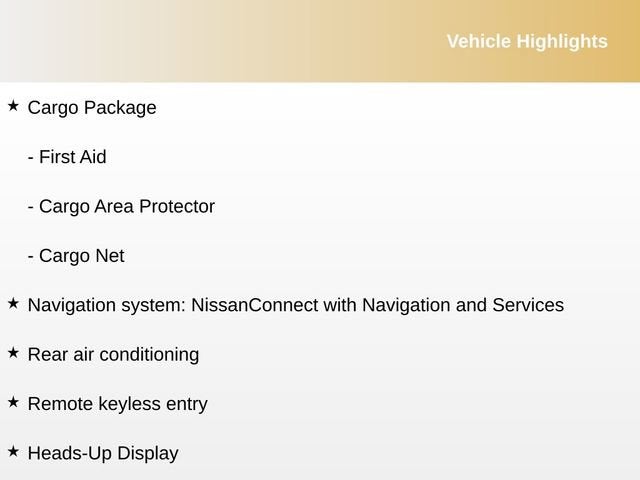 - Navigation system: NissanConnect with Navigation and Services